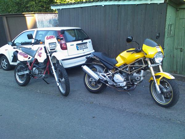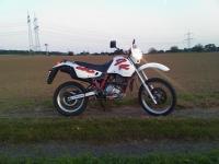 hier ist meine originale DR 650 R! Die hat die letzten 9 Jahre beim Vorbsitzer im Hühnerstall verbracht, der hat sie dann für 50 euro verkauft---an mich! ;-P