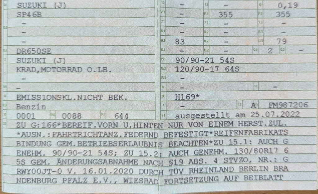 Re: ABE / Gutachten Acerbis 20L Tank für DR 650 SE SP46