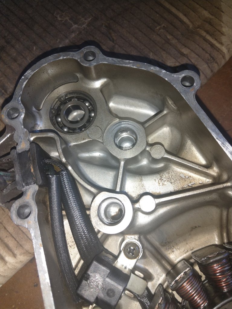Die Welle des Anlassers ist nicht lang genug um ins Lager auf der Deckelseite zu passen.