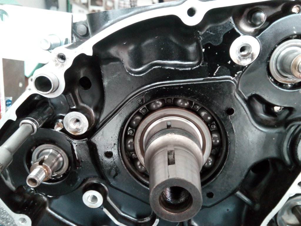 Ich habe mir deshalb nochmal mein altes KW-Lager, links angeguckt: ...dabei festgestellt, dass seitlich am Innenring ebenfalls Schleifspuren zu sehen sind...jedoch ohne das mir beim Renovieren des Motors in irgendeiner Form Verschleiß am Kettenrad aufgefallen wäre...aber auf den Fotos der KW sind am Lagersitz ebenfalls Schleifspuren zu sehen: