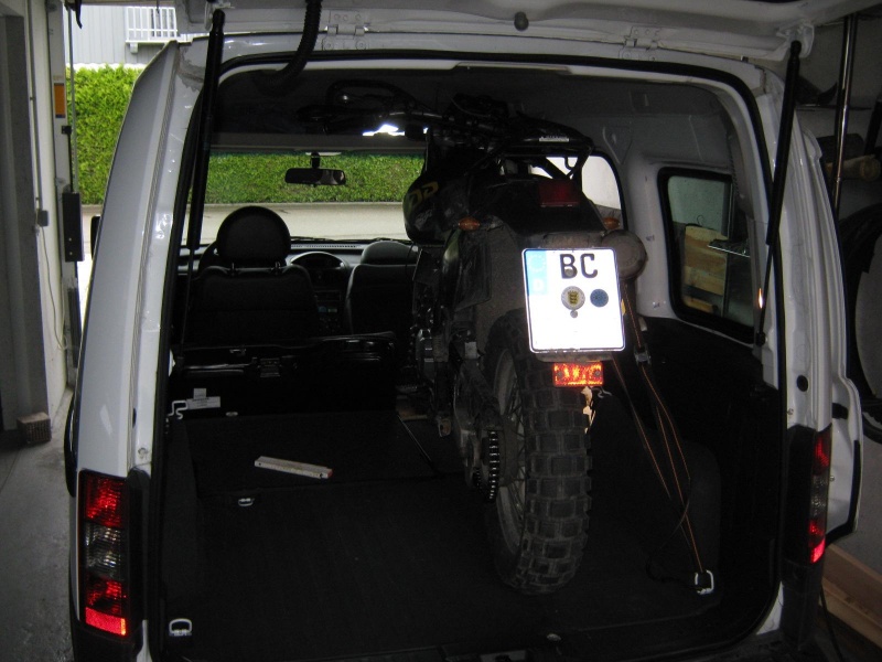 nein, das Motorrad ist noch nicht gesichert. Das war nur ein erster Test obs reinpasst. Allerdings hast du recht, selbst mit gut verzurrtem Mopo