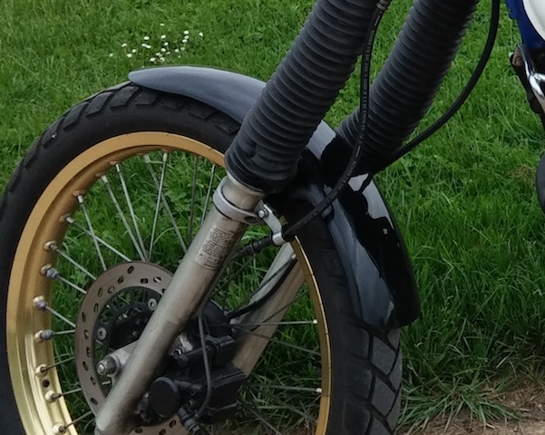 Ich kann das nicht richtig erkennen, aber ist das eine Ölspur die da auf der Rückseite deiner Gabel runterläuft oder ist das Dreckwasser? Das interressiert den TÜV auf jeden Fall, mehr wahrscheinlich als ein adaptierter Kotflügel.