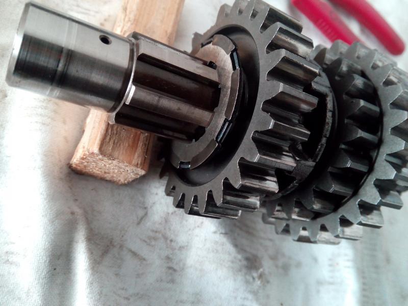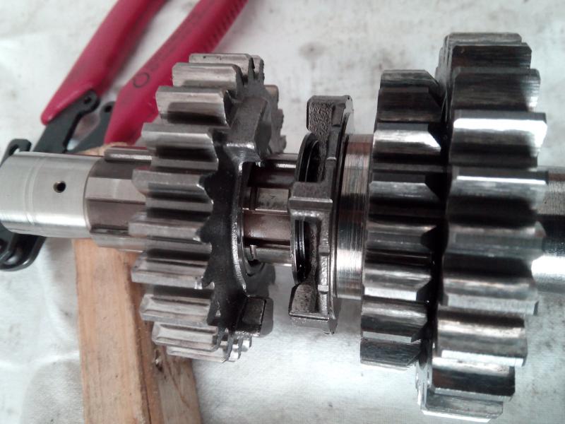 ...dann kommt auch schon der 3.Gang ins Spiel, der Seegerring wird auf die Welle gelegt, kommt aber noch nicht in seine Nut!