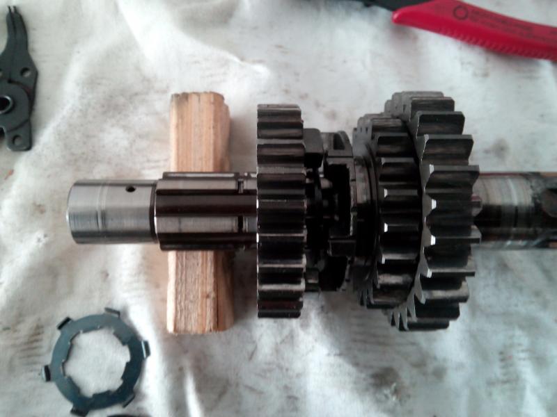 ...dann kommt auch schon der 3.Gang ins Spiel, der Seegerring wird auf die Welle gelegt, kommt aber noch nicht in seine Nut!