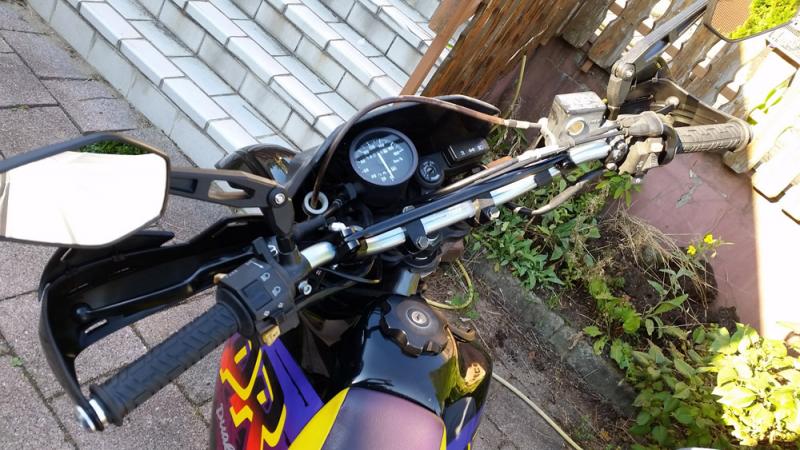 Die original Spiegel der DR sind zwar recht gut und vibrationsfrei, aber grottenhässlich. Deshalb war auch meine erste Amsthandlung seinerzeit: TÜV konforme, kleinere Spiegel raussuchen. Fündig geworden bin ich in der Bucht. Sehr günstig, Shin-Yo Booster, Paar ca. 30 EUR, aus stabilem Kunststoff, klappbar. Und erstaunlicherweise ziemlich vibrationsarm. Ach ja, Tüv - konform sind'se auch...