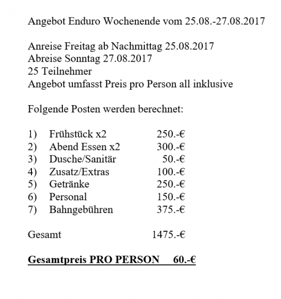 http://www.uhlenkoeper-ring.de/ ohne Bahngebühren kommen wir bei 25 Teilnehmer auf 44 €.