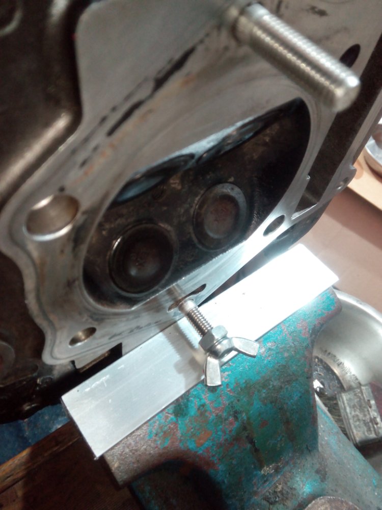 ...die 2. dazu, Ventilfederspanner entspannen, dabei auf die Keile achten! ...nicht dass da plötzlich was durch die Werkstatt fliegt!
