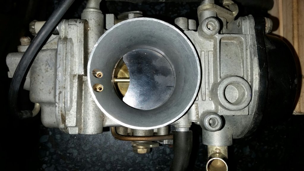 Was hast du denn für einen Vergaser? Standard waren glaube ich 38er Mikuni Flachschieber verbaut.