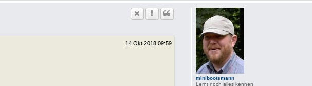 So, das teste ich jetzt. Ich sitze am PC und antworte hier. Gleich versuche ich einmal, meinen Beitrag zu ändern...Dennis hat geschrieben: 14 Okt 2018 09:59 Hi,