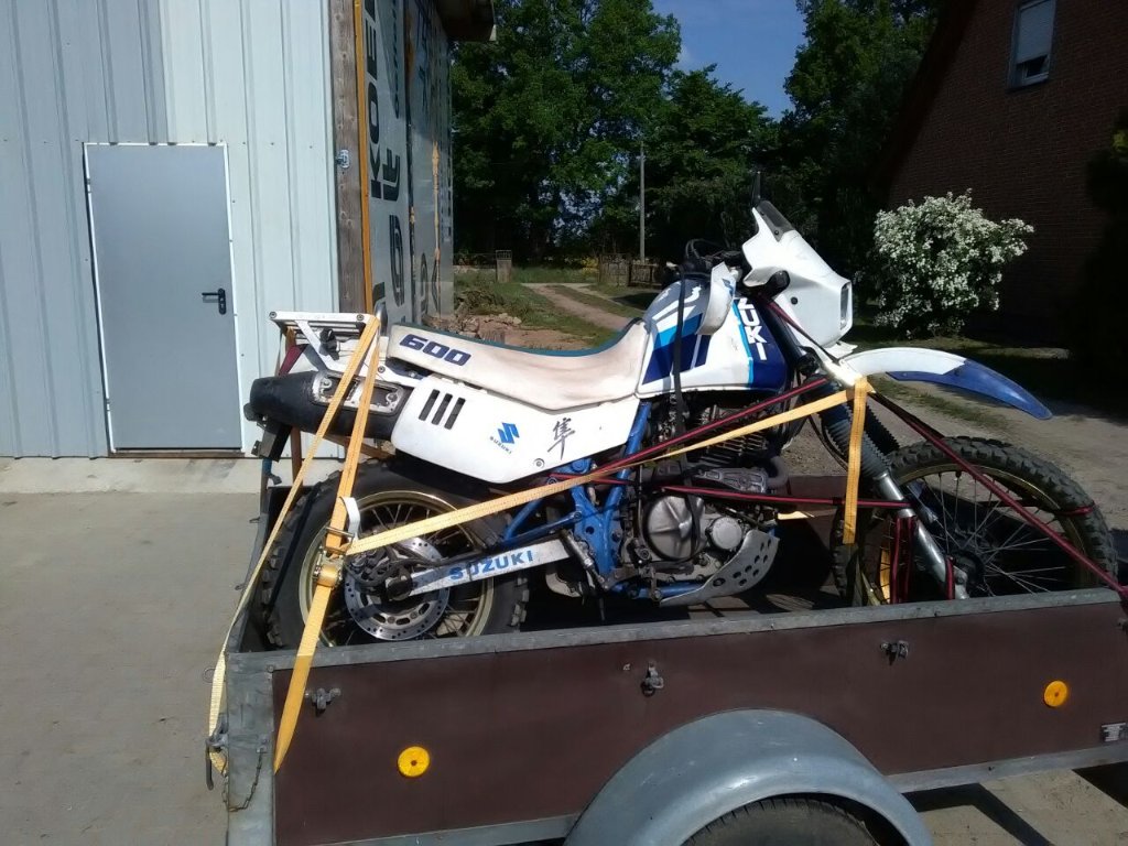 Ich habe mir eine DR 600 SN 41a Dakar bj 89 mit, laut Tacho 25 000km runter hat, gekauft für 600€. Der Vorbesitzer hatte sie 6 Jahre lang nicht angemeldet, da er nur bei sich auf dem Feld gefahren ist. So hat sie den auch ausgesehen. Habe Probefahrt gemacht, alles ok.