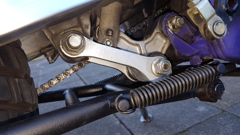 Wenn du das Federbein durch das obere Loch mit der Umlenkung verschraubst, machst du die DR niedriger.