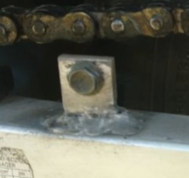 1. Auf den Bildern sehe ich einen völlig intakten Kettenschutz und defekte Schweißnähte.