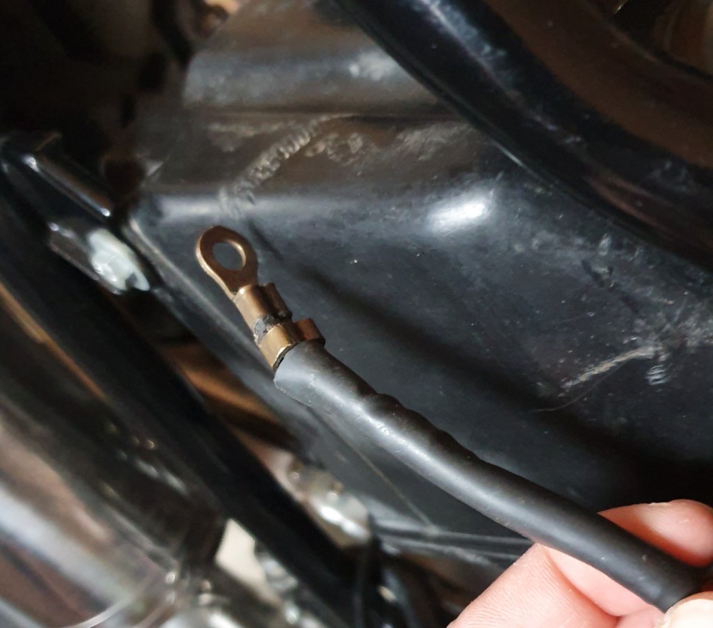 Alternativ kannst Du auch unter der Sitzbank z.B. am Batteriekasten eine Masseverbindung zum Rahmen herstellen.