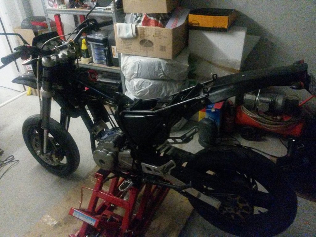 Hier gut zu sehen das der Motor nicht raus muss...der Rahmen der CCM ist gewiss nicht größer wie der der SP46, im Gegenteil!