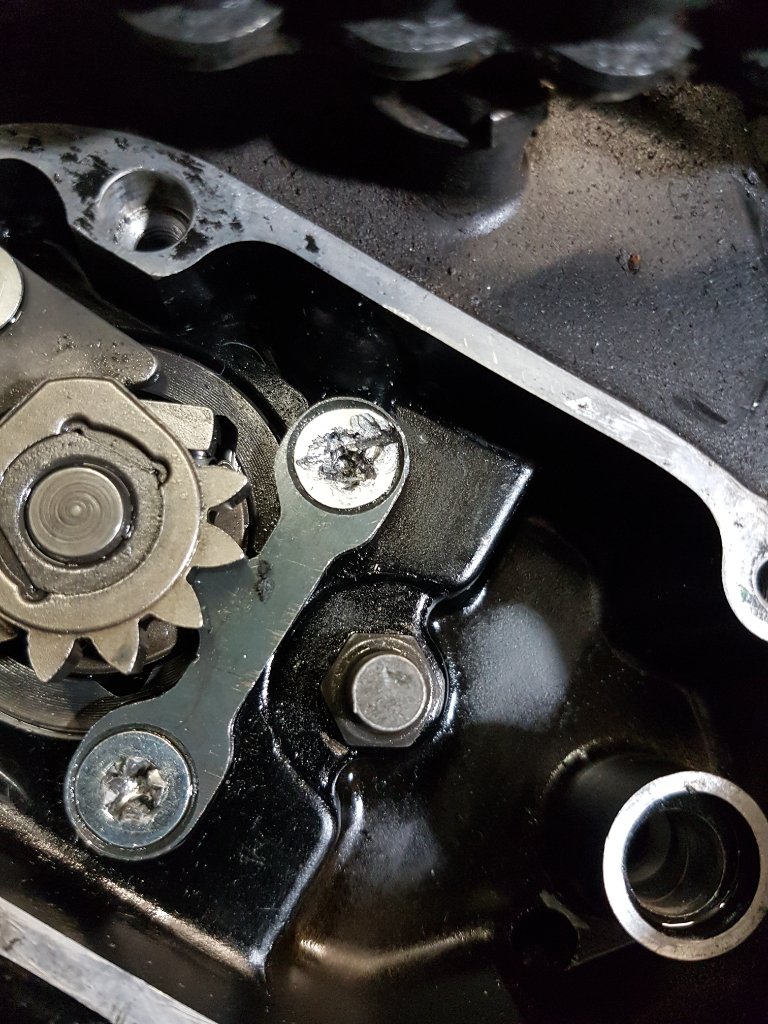 Rost wird da nicht sein, die Schrauben baden ja ihr Leben lang in Öl. Eingeklebt sind die auch nicht, nur butterweich. Wenn da mal ein nicht ganz passenden Kreuz angesetzt wird oder sogar ein Elektroschrauber ist die Schraube schnell hin. Körner geht, aber überträgt nicht so gut die Kraft wie ein Meißel.