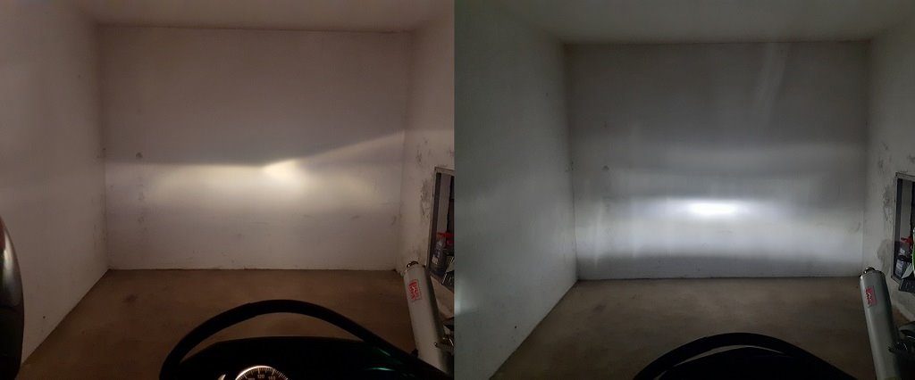 Außerdem hat der LED wesentlich mehr Streulicht, was den entgegenkommenden Verkehr stören dürfte.