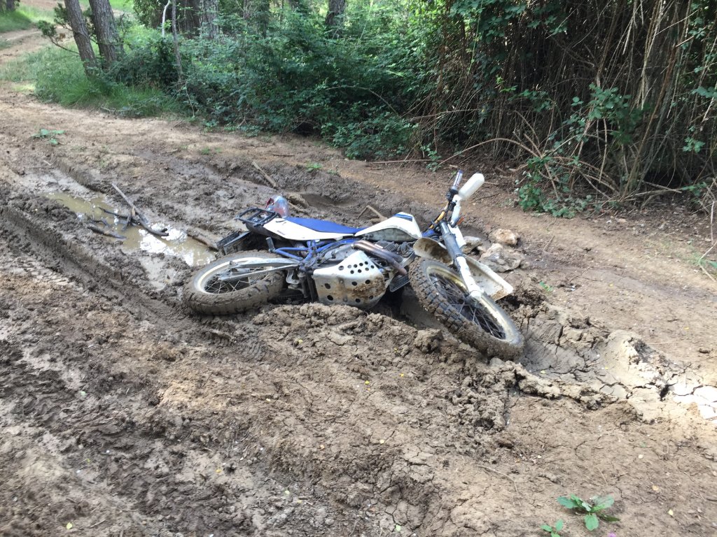 Ganz doof, wenn man gerade drunterliegt, während das Mopped kippt.