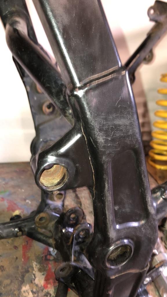 Nebenbei ! Hast du noch ein Foto von dem langen Riss am Auge ? Und an der einen Naht erkennt man das auf der Rückseite geschweißt wurde. War der Rahmen an der Stelle total durch