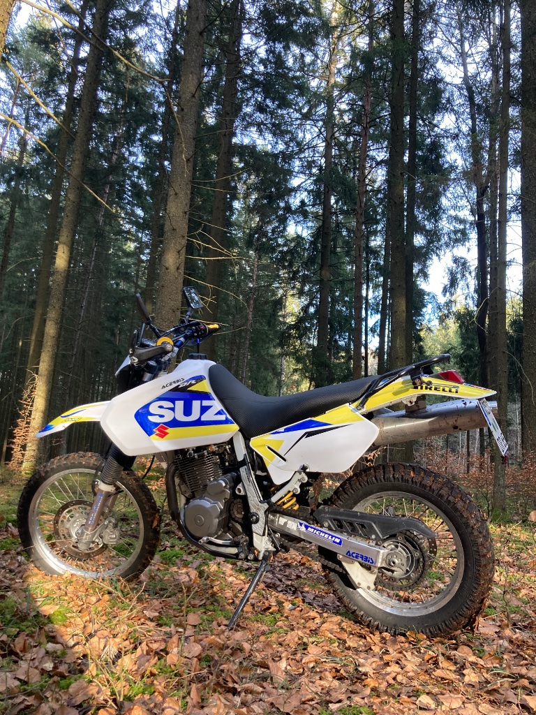 Ich glaub es wird mal Zeit für ein Update. Seit ich die DR im Oktober gekauft habe, habe ich jeden Monat Stück für Stück in sie investiert, im Januar komplett zerlegt und jetzt wieder neu aufgebaut. Die Liste an Extras ist lang, also lass ich am besten Bilder sprechen. Besonders hervorheben möchte ich allerdings das Fahrwerk. Hinten ist ein Wilbers Typ 642 verbaut und vorne arbeitet jetzt eine RMZ 250 Bj.07 Gabel.