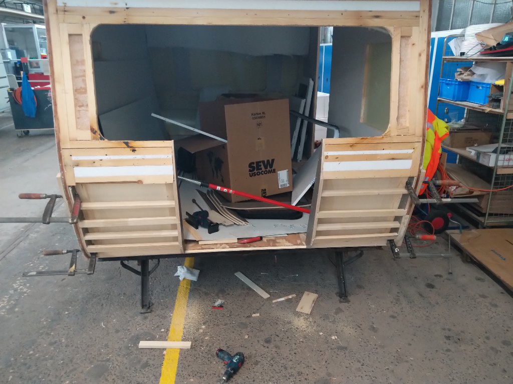 Der Wohnwagen soll im Heck ein herausnehmbares Mittelteil bekommen, sodass ich die DR einladen kann.