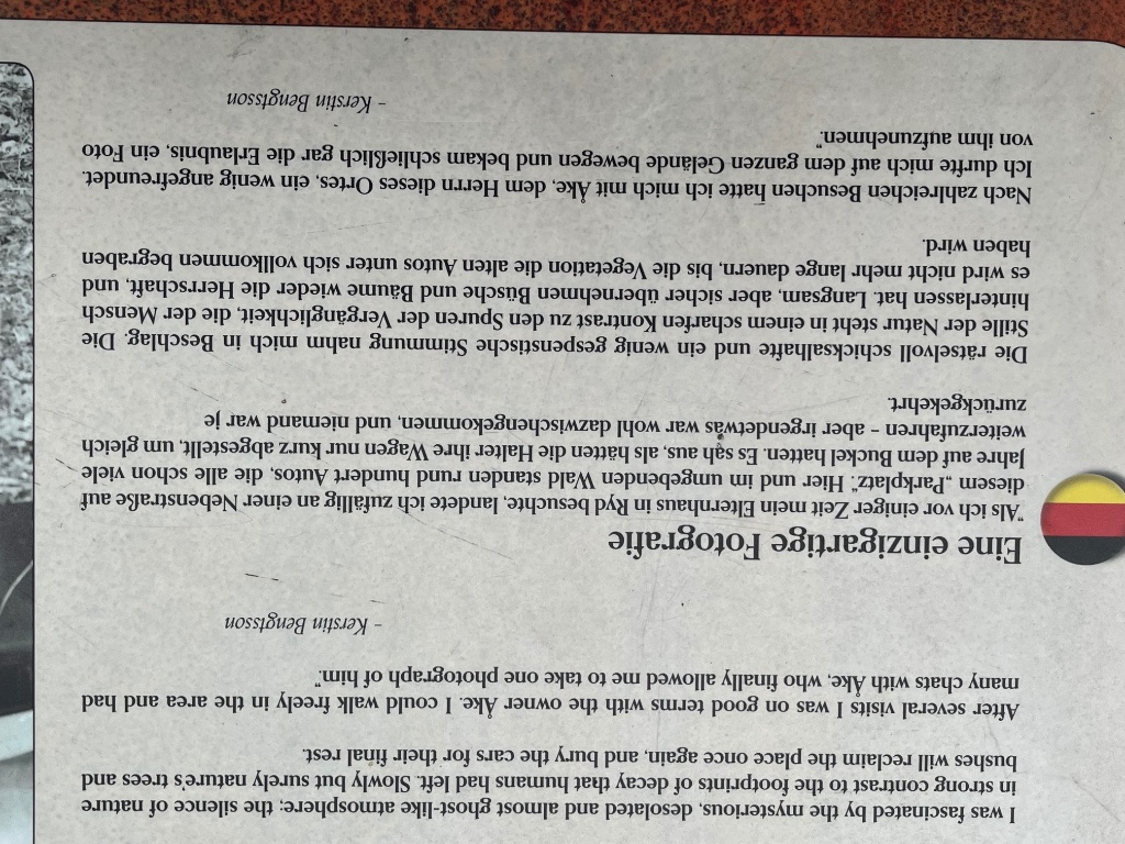 Das lesen ist wie ein kleiner Urlaub für mich.