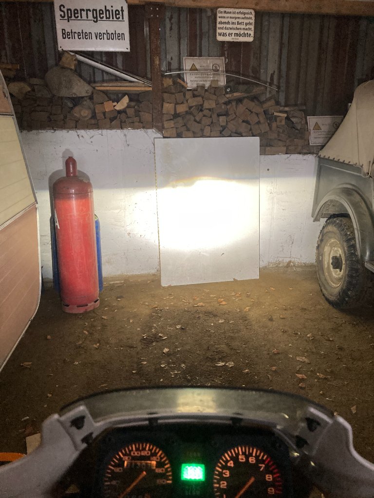 Hier noch ein paar Fotos nach Einbau. Richtig auf der Straße testen kann ich das Licht erst ab 1.3.
