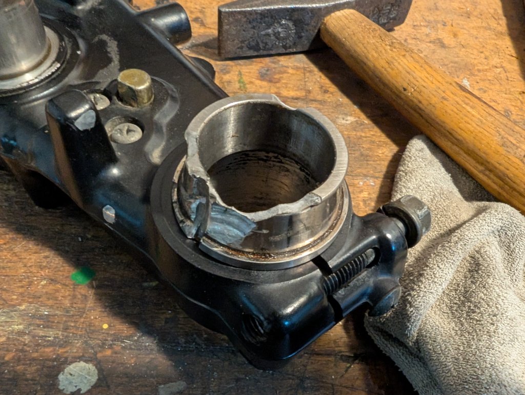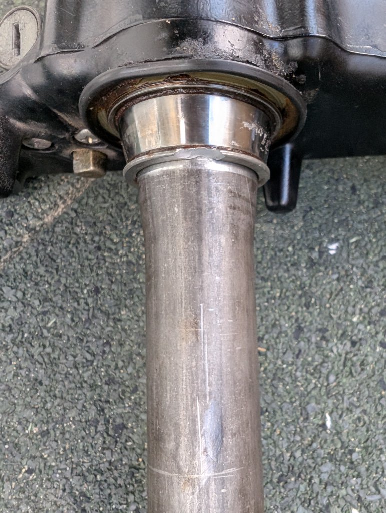 - Das alte Kegelrollenlager vom Schaft bekommen (leider chipped es beim Hämmern, ich habe mir vorsorglich mal einen neuen Staubschutz für unten mitbestellt - vielleicht kann mir jemand einen Abzieher leihen) - oder hat jemand sonst noch eine Idee? Aktuell fällt mir nichts ein, außer mit einem Dremel sehr vorsichtig versuchen es aufzuschneiden... aber der Gedanke da zehntel Millimeter bis an den Schaft zu schneiden, bis sie dann bricht, erfreut mich nicht gerade...