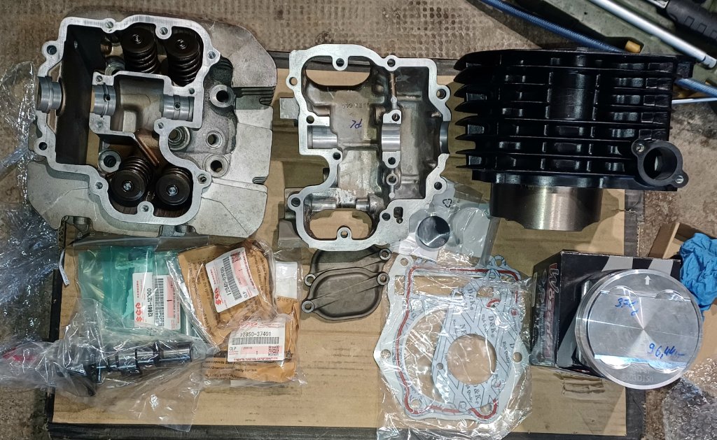 Habe meinen defekten Motor (Top end und steuerkette) komplett überholt…. Neue Ventilsitze, Kanäle bearbeitet, neue Federn, Brennraum gestrahlt und geplant, Zylinder gebohrt und Weseco Schmiedekolben, Tm40 Flachschieber, Offene Auspuffanlage, umgebauter Luftfilter und kürzere Übersetzung…