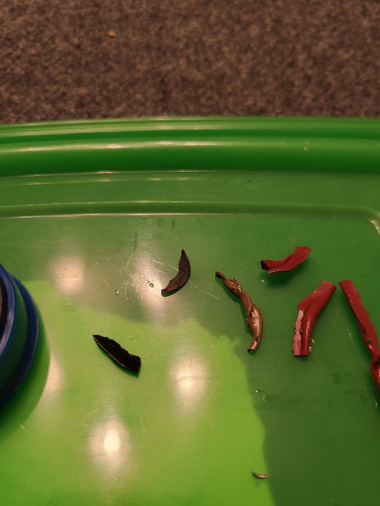 Hat jemand eine Idee woher die Späne rühren könnten + Woher das Gummi kommen könnte ?