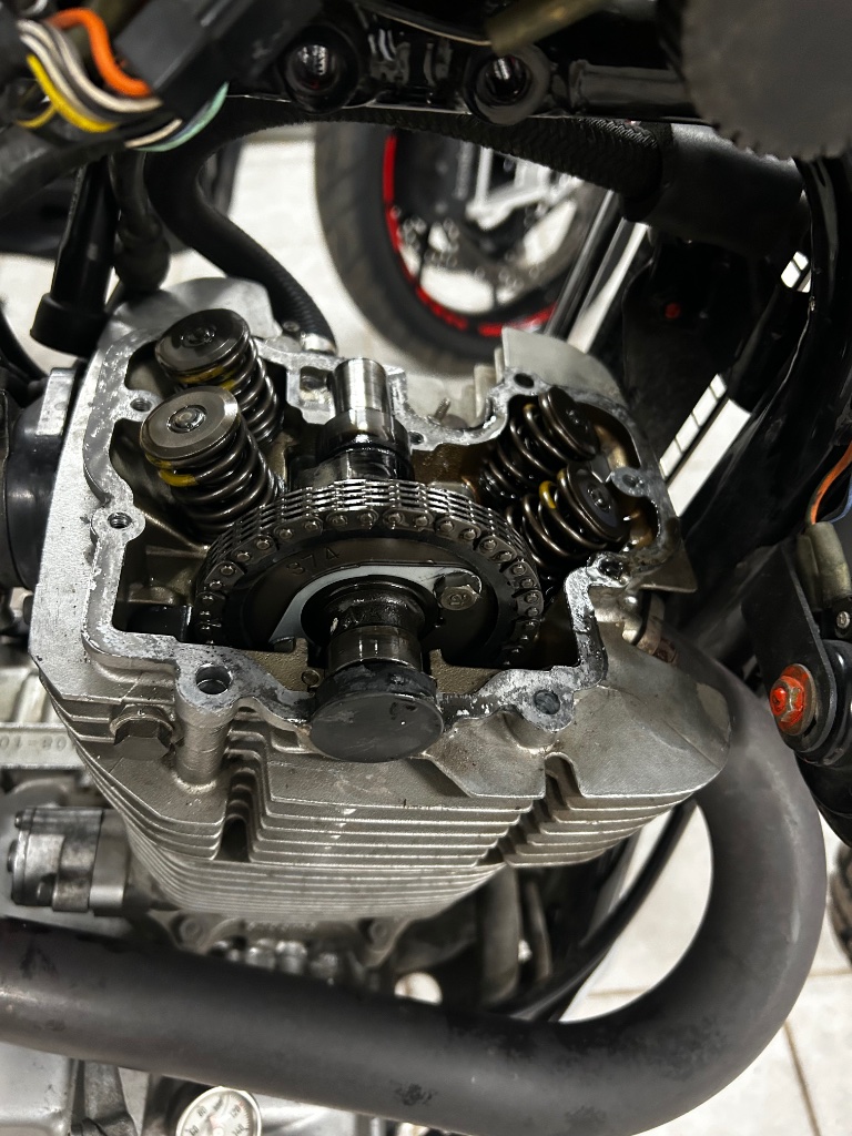 Meine hat’s auch erwischt. Nockenwelle und Auslasskipphebel haben sich schön eingearbeitet. Nockenwelle ging direkt zu Campro zur Reparatur. Ca 3 Wochen später war sie wieder zurück. Kipphebel und diverses Kleinheit gabs dann auch noch neu. Jetzt läuft sie wieder schön ruhig. Leider ist noch ein Gewinde im Motorblock ausgerissen und der Kupplungsdeckel somit nicht dicht. Also nochmal Öl raus und Gewinde erneuern.