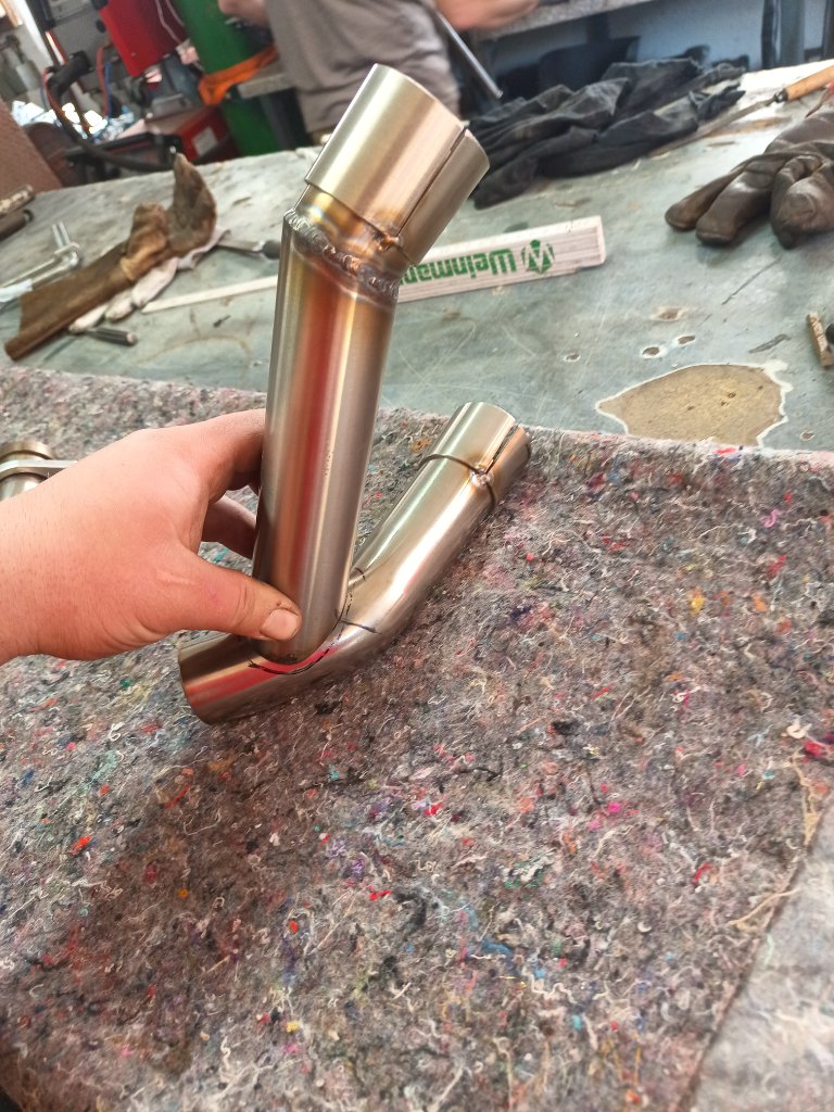 Das vollständige bild meiner suzi mit der montierten Abgasanlage war die datei zu groß, werde ich morgen schicken. Das ist das y Stück. (Da ich länger nicht mehr wig geschweißt habe, haben sich meine Fähigkeiten in grenzen gehalten deshalb Leider die unschöne naht).