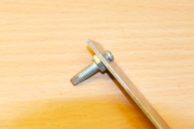 - Gewindeschrabe mit Blechschraube am Alustreifen befestigen, dabei muss alles ein wenig Spiel habe, damit mal bequem drehen kann