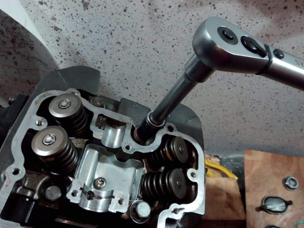 - etwa 2 cm vor aufsetzen des Zylinderkopfes auf den Zylinder, ersteren um 90° wieder in die richtige Position zurückdrehen und aufsetzen!