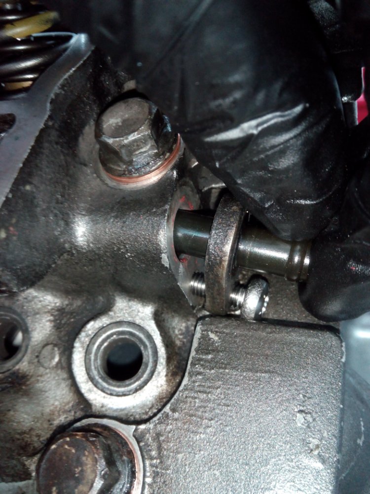 - in den Schacht des Zylinderkopfes, die 2. Steuerkettenspannerschiene (die mit der Bohrung) von oben um 90° verdreht in den Schacht des ZK einführen...