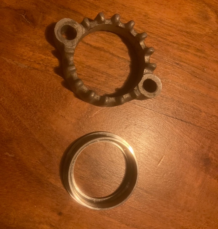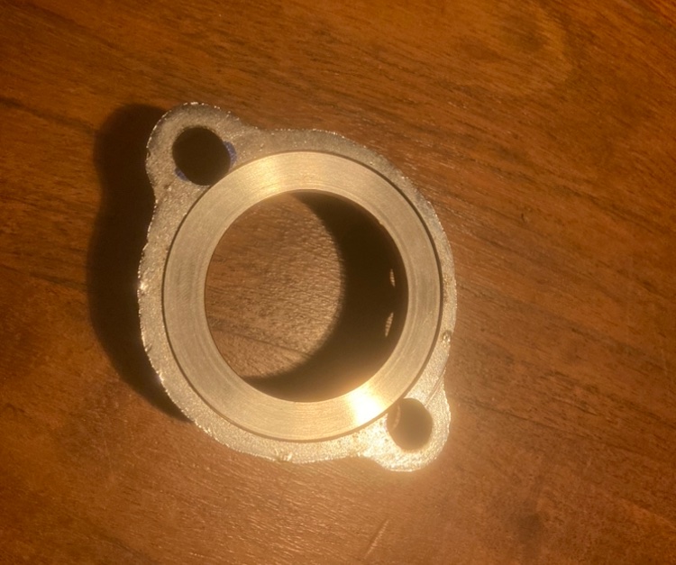 Der 4mm Krümmerflansch, den es zum Edelstahlkrümmer dazu gab, hat mir noch nie so wirklich getaugt. Windig, Loch zu groß als das es wirklich flächig gegen den Krümmer drücken würde.