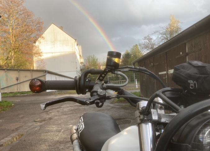 Da das nicht als Fahrzeug für ambitionierte Ritte gedacht war, dachte ich das ich mit der DR650 Gabel und den Hagon Dämpfern zurecht komme. Tue ich auch, aber es nervt. Werde wohl im Winter auf zeitgenössische Bilsteine umbauen und vorn in neue Federn investieren.