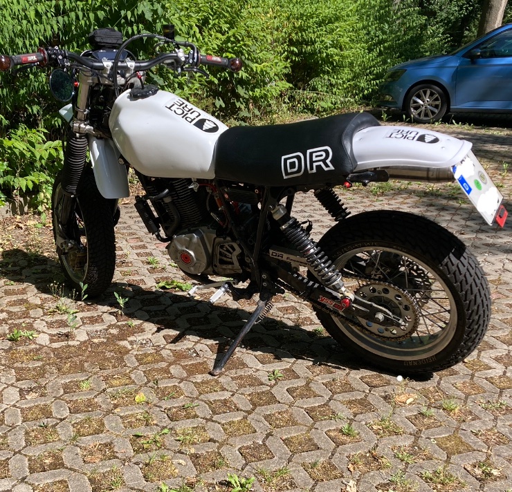 Die DR des Berichtes fährt grundsätzlich gut. Springt zuverlässig an, macht was sie machen soll. Bei der Bedüsung bin ich noch nicht dort, wo ich hin will. Werde nochmal eine größere Leerlaufdüse testen. Wenn’s das nicht bringt werde ich mal eine kürzere und/spitzere Nadel testen. Muss jedenfalls deutlich fetter bedüst werden, als die DR500 V1. Scheint als habe die Kopfbearbeitung was gebracht. Oder es liegt am Krümmer oder am Trichter, keine Ahnung. Mehr Luft heißt jedenfalls mehr Füllung, das üblicherweise mehr Leistung bringt.