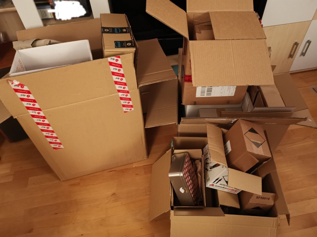 . 15 Pakete haben wir fertig und zu Herpes an die Tanke gebracht. Bin mit dem ersten Karton da rein und das Mädel wollte gleich loslegen mit dem Scannen. "Stop, da kommt noch mehr". Ersten Karton abgestellt und den zweiten, größeren aussem Auto geholt. Dann ging das los, ging das.