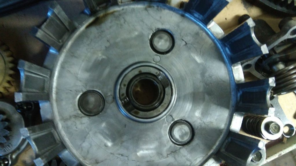 Beim Zerlegen ist mir noch aufgefallen, dass Kuplungskorb und Druckplatte an der Oberfläche Risse aufweisen: