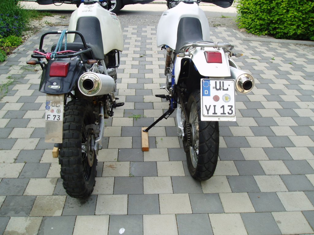 Sportnummerschild habe ich auch, für Ausritte in z.B. Italien/Französischen Seealpen wo man sein Orschinal nicht verlieren will. Allerdings die geschrumpelten Bäpper halte ich für selbst gedruckt und verklebt