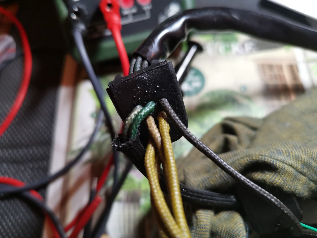 Silikonkabel ist nicht das Problem, das nehme ich einfach vom Verlängerungskabel. Sind die Adern halt braun bzw. blau, egal. Zum Isolieren gibt es auch ölbeständigen Schrumpfschlauch. Ich brauche nur ganz wenig, genau wie vom Textilschlauch.