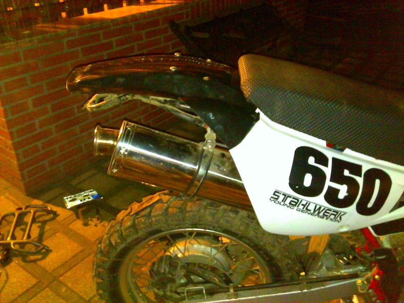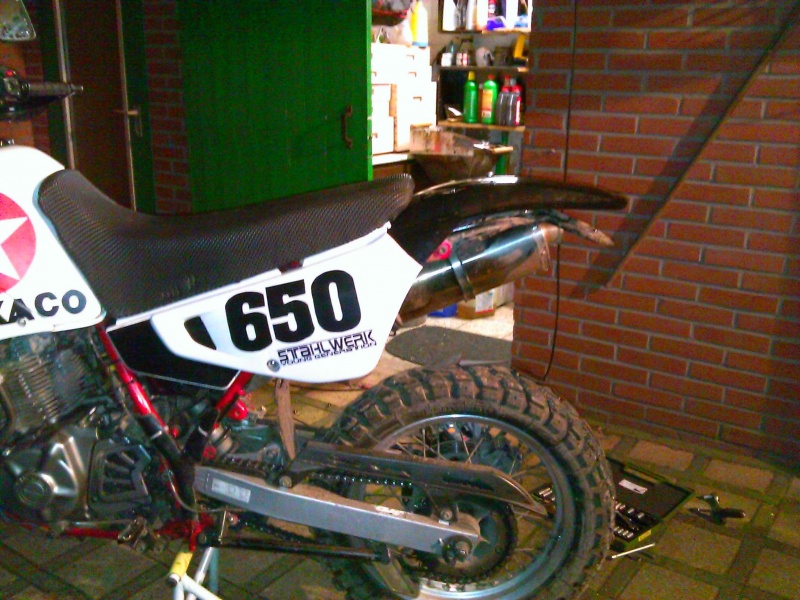 Heck zusammengebastelt (irgendwie Plastikgeschweißt) und draufgesetzt. Passt aber nicht schön, da der Heckrahmen breiter ist als das Plastik. Schade.. das wird wohl nicht lange so bleiben.