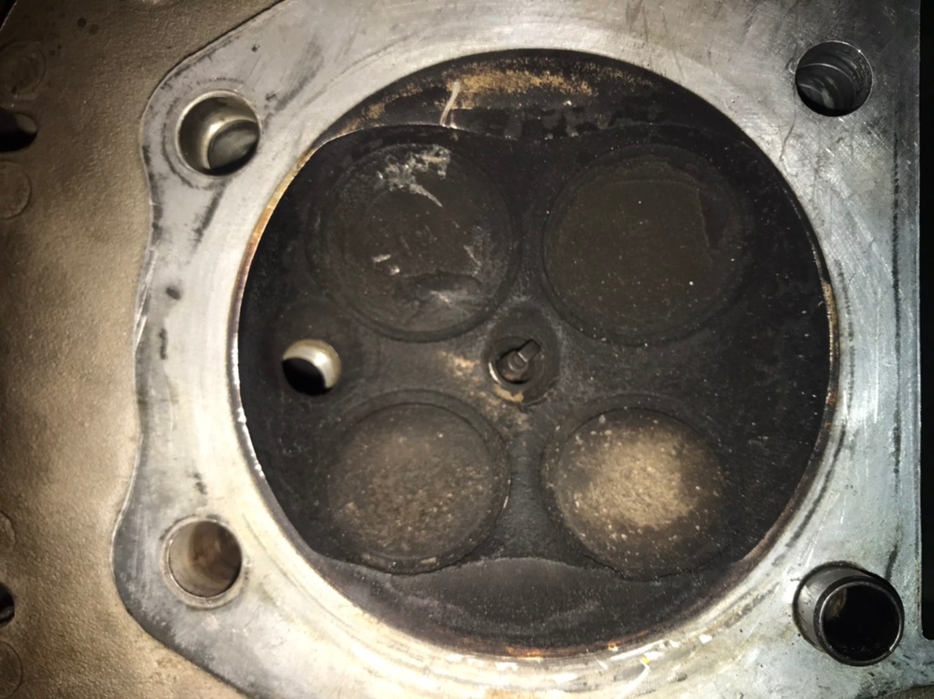 der hier sieht schonmal gut aus. ein m6 gewinde ist kurz vorm aufgeben. da ist aber genügend fleisch für ein helicoil. ich freu mich schon das einzubauen. ventile prüf ich noch und schleife sie sanft ein. der kopf sieht nicht sooo alt aus. die sitze sollten also noch gut sein. schau ich mir an.