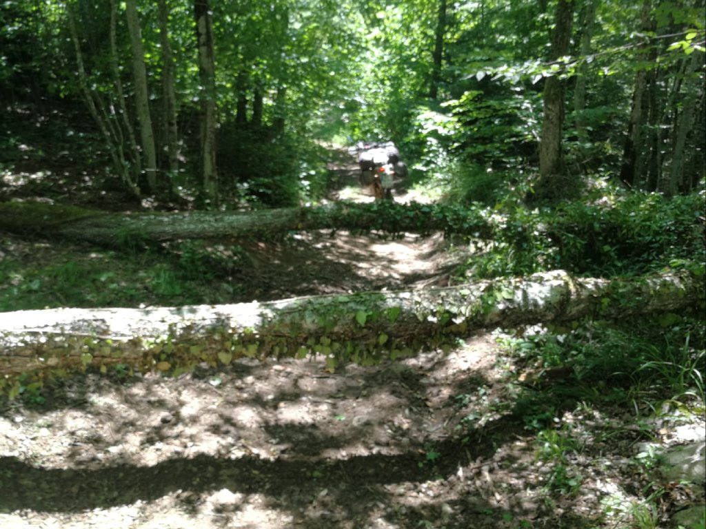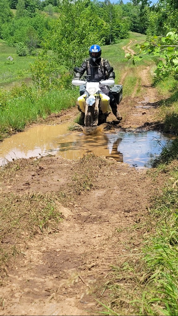 Dann sind wir die etwa.1.200 km TET bis fast Ende Bosnien gefahren. Nach 3 Wochen Dauerregen war es, als wir ankamen, trocken. Viel Kies, der Avon machte das problemlos mit. Manchmal Schranken, manchmal Verbotsschilder obwohl wir auf dem Weg der App unterwegs waren. Einige Schlammpassagen. Einmal mussten wir die Motorräder quasi um die gefällten Bäume herum tragen. Auch im Schlamm ging das mit dem Avon. Vielleicht lags an der Spezial-Tractionskontrolle von KTM für das Gelände. An meinem Können lags sicher nicht. 😏