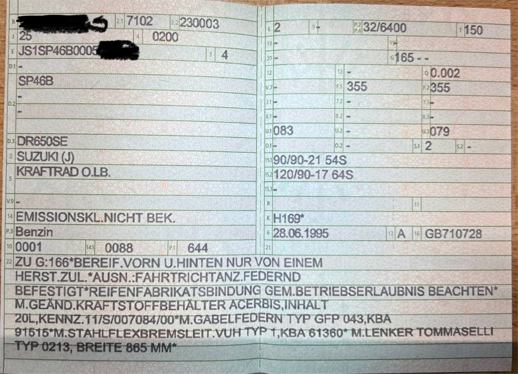 Re: ABE / Gutachten Acerbis 20L Tank für DR 650 SE SP46