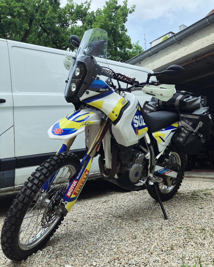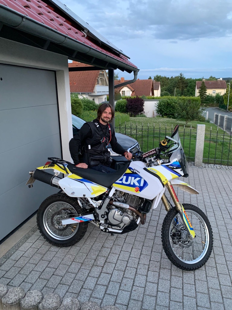 Die Maschine steht nun zum Verkauf. Nach längerer Überlegung werde mich vom Fahren auf der Straße verabschieden und nun nur noch Rally und Crosscountry Rennen fahren. Dafür ist mir diese wunderschöne DR echt zu schade.