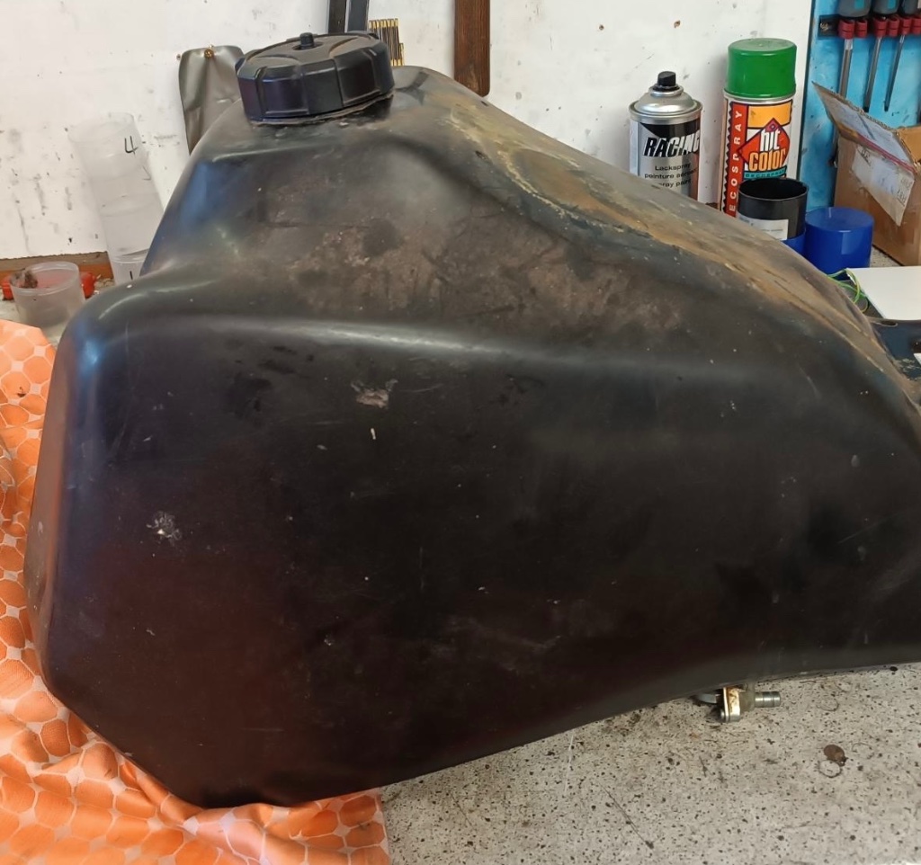 Der Tank aus KA ist ein 14 Liter Tank, der Verkäufer hat ihn nicht genutzt da er gleich einen 25 Acerbis montierte.