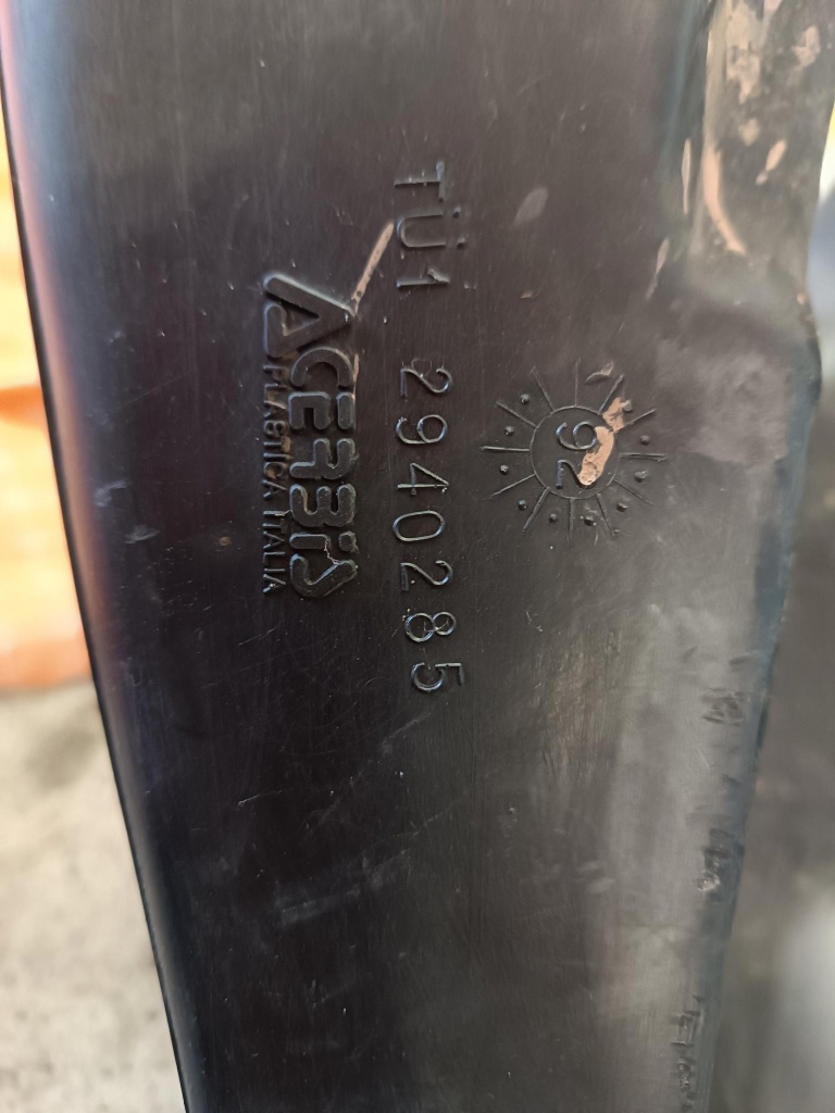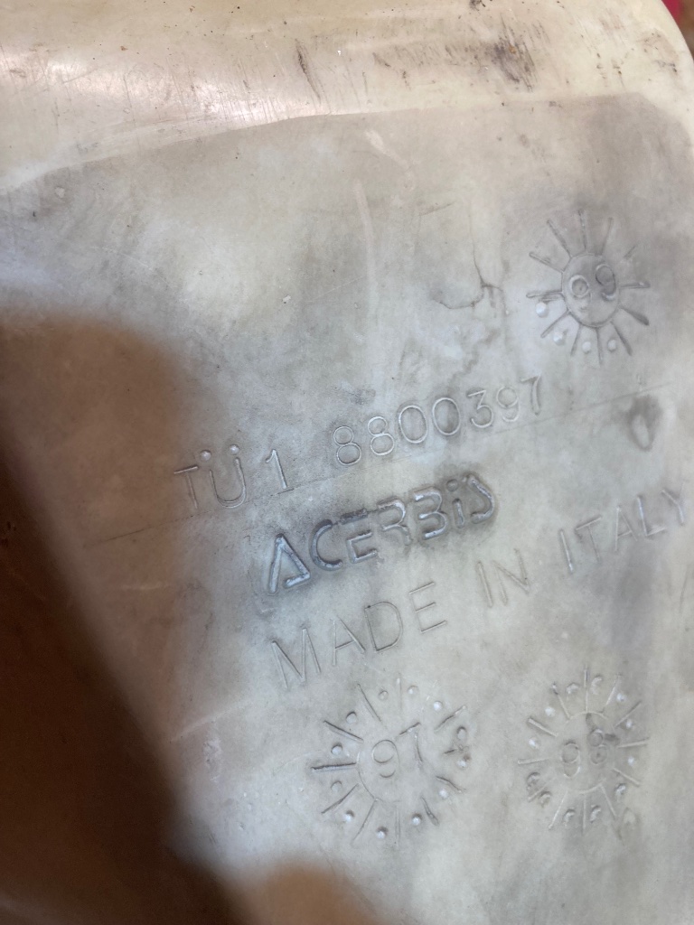 Ob der wirklich von Acerbis ist, oder nur so gelabelt wurde, dass weiß ich nicht. Hat mich immer schon stark an IMS erinnert. Wenn’s wirklich Acerbis ist, dann müsste das irgendwo im Kunststoff eingegossen sein…