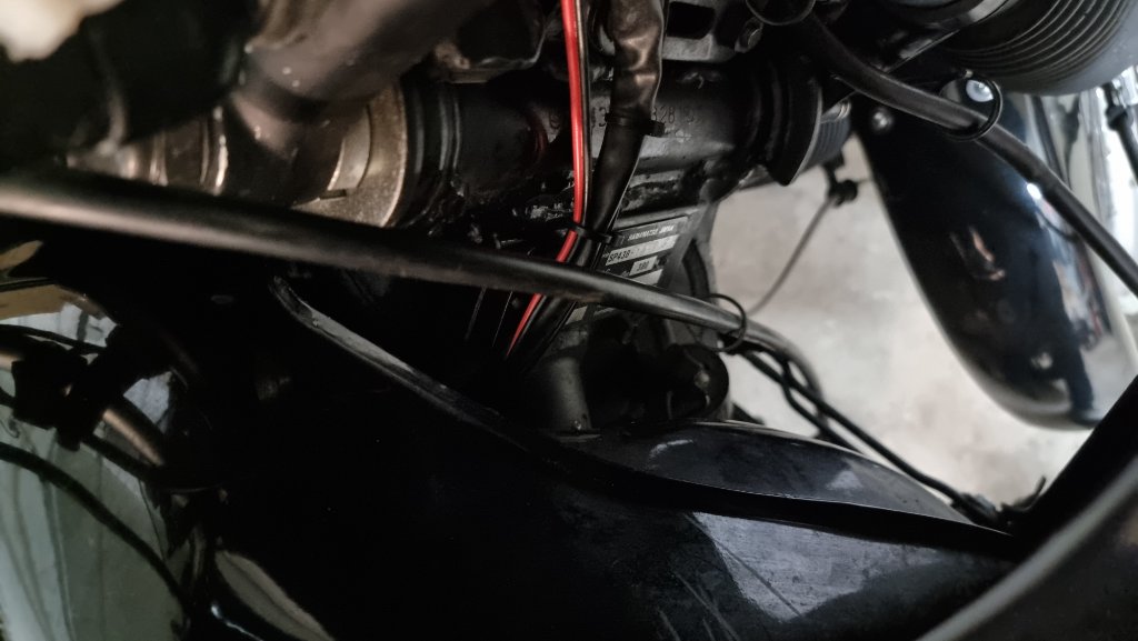 Zum anderen gehört der Kupplungszug hinter die Halterung (zwischen Halterung und Rahmen) für die Seitenverkleidungen.