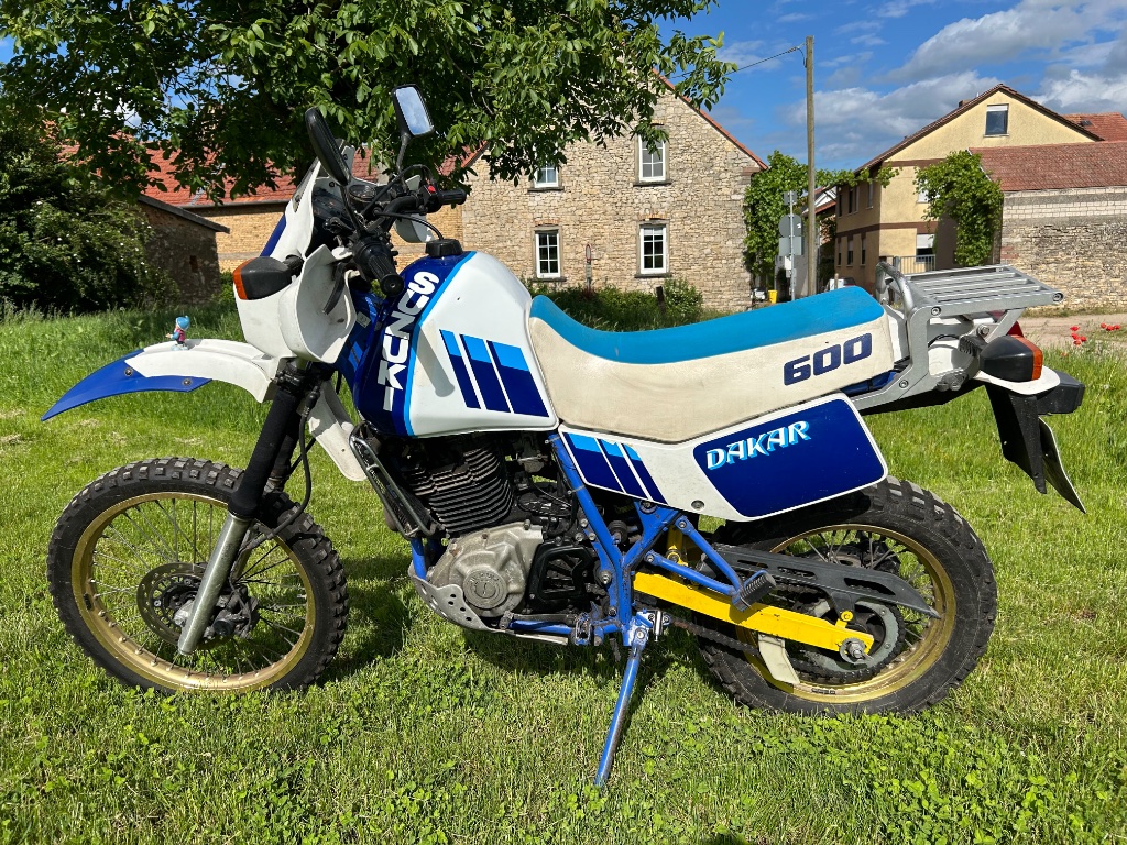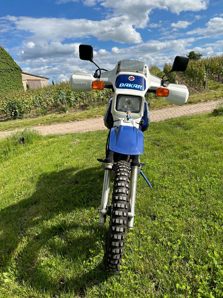 mich zu und sagte ob er mal die DR sehen könnte. Nachdem er sie in Augenschein genommen hatte sagte er....die würde ich nie verkaufen ne dakar letzte Baureihe mit Kicker komplett original never ever....